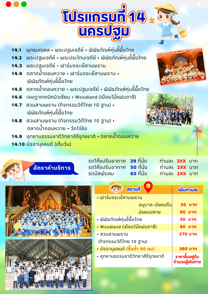 💖 A dă̈y with Fahsuay Travel 👧🏻👦🏻 ฟ้าสวย แทรเวล มีความรู้สึกยินดีเป็นอย่างยิ่งที่ได้มีโอกาสนำ คณะครู และนักเรียน เดินทางสู่จังหวัด นครปฐม ซึ่งเป็นกิจกรรมการเรียนรู้นอกห้องเรียน เป็นกิจกรรมที่นักเรียนได้รับประสบการณ์ ความรู้ใหม่ และเป็นการขยายขอบข่ายของความคิด เพิ่มพูนทักษะของนักเรียนเป็นกิจกรรมที่ช่วยผสมผสานในการเรียนการสอนในห้องเรียนได้ผลอย่างสมบูรณ์