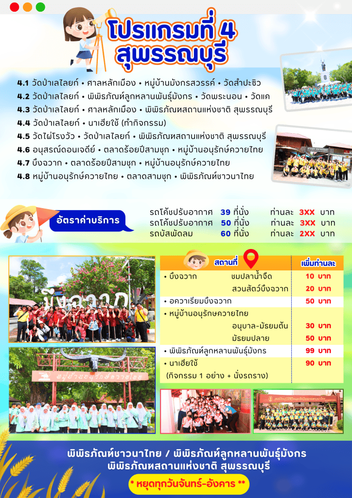 💖 A dă̈y with Fahsuay Travel 👧🏻👦🏻 ฟ้าสวย แทรเวล มีความรู้สึกยินดีเป็นอย่างยิ่งที่ได้มีโอกาสนำ คณะครู และนักเรียน เดินทางสู่จังหวัด สุพรรณบุรี ซึ่งเป็นกิจกรรมการเรียนรู้นอกห้องเรียน เป็นกิจกรรมที่นักเรียนได้รับประสบการณ์ ความรู้ใหม่ และเป็นการขยายขอบข่ายของความคิด เพิ่มพูนทักษะของนักเรียนเป็นกิจกรรมที่ช่วยผสมผสานในการเรียนการสอนในห้องเรียนได้ผลอย่างสมบูรณ์