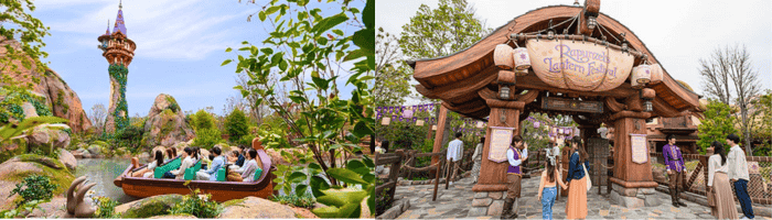 ไม่รอช้ารีบพุ่งตัวเข้าไปสู่โลกของราพันเซล อิงจากภาพยนตร์ดิสนีย์เรื่อง “Tangled” มองเห็นหอคอยราพันเซล (Rapanzel’s Tower) ตั้งตระหง่านโดดเด่นมาแต่ไกล สวยงามทั้งกลางวันและตอนกลางคืน ที่สำคัญห้ามพลาดกิจกรรมไฮไลท์อย่าง Rapanzel’s Lantern Festival เครื่องเล่นที่แสนจะโรแมนติก กับการล่องเรือไปยังเทศกาลโคมไฟประจำปีที่ส่องสว่างจำนวนนับไม่ถ้วน ผ่านเรื่องราวต่างๆ มากมาย ให้ความรู้สึกเหมือนได้เข้าไปอยู่ในฉากใดฉากหนึ่งของเรื่อง พร้อมมีเพลงเปิดคลอไปด้วย