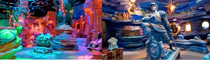 ไปต่อกันที่โซนเบาๆ เหมาะสำหรับน้องๆ หนูๆ มาในธีมจากเรื่อง เงือกน้อยผจญภัย “The Little Mermaid” พาเราเข้าไปโลกใต้ทะเล สำรวจเมืองบาดาลที่อยู่ภายในปราสาท ภายในโซนมีเครื่องเล่นอย่าง Ariel’s Playground สนามเด็กเล่นของแอเรียล เต็มไปด้วยเครื่องเล่นน่ารักๆ ไม่ว่าจะเป็น Jumpin’ Jellyfish เครื่องเล่นแมงกระพรุนเรืองแสง ที่แหวกว่ายขึ้นลงไปในท้องทะเล หรือ Blowfish Balloon Race ชิงช้าปักเป้าตัวกลม นอกจากนี้ยังมีโชว์ Mermaid Lagoon Theater โชว์โลกใต้ทะเลของแอเรียลและเพื่อนๆ จากเรื่อง The Little Mermaid