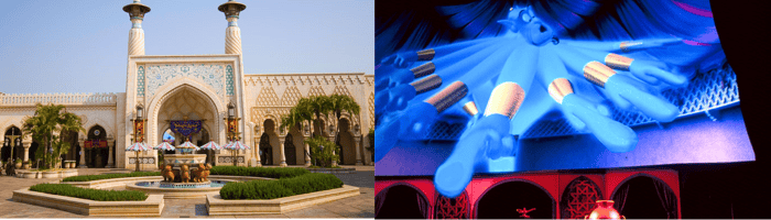 ใครเป็นแฟน อะลาดินและเจ้าหญิงจัสมิน จะพลาดโซนนี้ได้ยังไง เพราะเป็นโซนท่าเรืออาหรับ ท่องไปในโลกมหัศจรรย์และเวทย์มนต์จากเรื่อง Aladdin และ Sindbad ทำให้บรรยากาศและการตกแต่งเป็นแนวอาหรับ เหมือนได้แวะไปแถบตะวันออกกลางและอินเดียในคราวเดียว ส่วนเครื่องเล่นจะเบาๆ เล่นได้ทุกเพศทุกวัย อย่าง Sindbad’s Storybook Voyage ล่องเรือผจญภัยเข้าไปในโลกของซินด์แบด คล้ายกับเครื่องเล่น ‘It’s a Small World’ ของฝั่งโตเกียวดิสนีย์แลนด์ หรือน้องๆ หนูๆ จะนั่งพรมวิเศษ Jasmine’s Flying Carpets บินขึ้นลงวนไปรอบๆ รวมถึง The Magic Lamp Theater ชมการแสดงมายากลของนักมายากลที่ยิ่งใหญ่ที่สุดในโลก พร้อมชมภาพยนตร์แบบ 3D