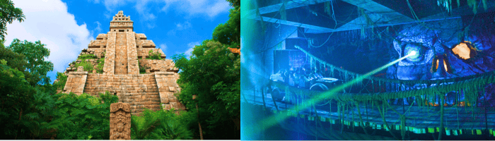 พักลงน้ำบ้าง ขอเดินลุยเข้าไปในโซนป่าอเมริกากลาง ช่วงทศวรรษ 1930 ออกสำรวจอารยธรรมโบราณ โดดเด่นด้วย พีระมิดแอซเท็ก (Aztec Pyramid) ขนาดใหญ่ที่พังทลายลง เต็มไปด้วยเครื่องเล่นสุดหวาดเสียวที่มีกลิ่นอายมาจากภาพยนตร์เรื่อง “อินเดียน่า โจนส์” (Indiana Jones) อย่าง Indiana Jones® Adventure: Temple of the Crystal Skull เครื่องเล่นแนวผจญภัย ด้วยการนั่งรถจิ๊บตะลุยวิหารแห่ง Crystal Skull ที่อยู่ใต้ดิน โดยมีวิญญาณผู้พิทักษ์แห่งวิหารคอยตามรังควานเราตลอดเส้นทาง หรือจะนั่งรถไฟเหาะตีลังกาม้วน 360 องศาในซากโบราณไปกับเครื่องเล่น Raging Spirits บอกเลยว่าห้ามพลาดเด็ดขาด เพราะทั้งฉาก แสง สีเสียง และเอฟเฟกต์ต่างๆ คืออลังการงานสร้างสุดๆ