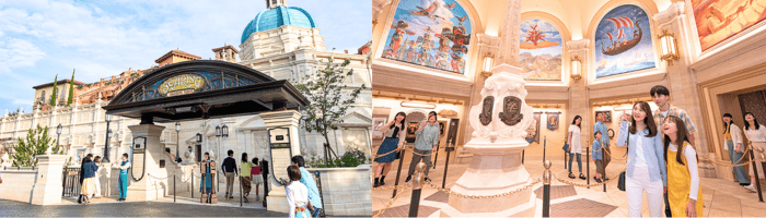 มาเริ่มความสนุกกันที่โซนร้านค้าและร้านอาหารในธีมยุโรปทางตอนใต้ เดินลอดซุ้มประตูทางเข้ามาปุ๊บก็จะเจอทันที เปรียบเสมือนเมืองท่าที่ต้อนรับผู้คนมาเยือน ให้บรรยากาศสุดโรแมนติก ภายในโซนประกอบไปด้วยร้านค้า ร้านขายของฝาก ร้านอาหาร และร้านขนมมากมาย เติมพลังให้ร่างกายก่อนไปลุยกับเครื่องเล่นไฮไลต์ของโซนนี้อย่าง Soaring: Fantastic Flight เครื่องร่อนที่พาเราบินไปรอบโลก ไปตามแลนด์มาร์คดังๆ อย่างเช่น ยอดเขาเอเวอเรสต์ กำแพงเมืองจีน หรือพีระมิดอียิปต์ ก่อนจะวกกลับมาที่ โตเกียวดิสนีย์ซี ซึ่งพี่เห็ดแนะนำให้รีบเดินปรี่เข้าไปตั้งแต่ช่วงเปิด เพราะเป็นเครื่องเล่นฮิตที่คนต่อแถวเล่นเยอะมาก ใช้เวลาต่อคิวนานสุดๆ และห้ามพลาดกับการแสดงพาเหรดบนน้ำ ที่บอกเลยว่าว้าวมาก! จะเห็นคาแรคเตอร์ต่างๆ ไม่ว่าจะเป็น มิกกี้เมาส์ มินนี่เมาส์ และอีกมากมาย มาทำการแสดงโชว์ ทั้งร้อง เล่น เต้นรำให้เราได้ดูกันอย่างใกล้ชิด